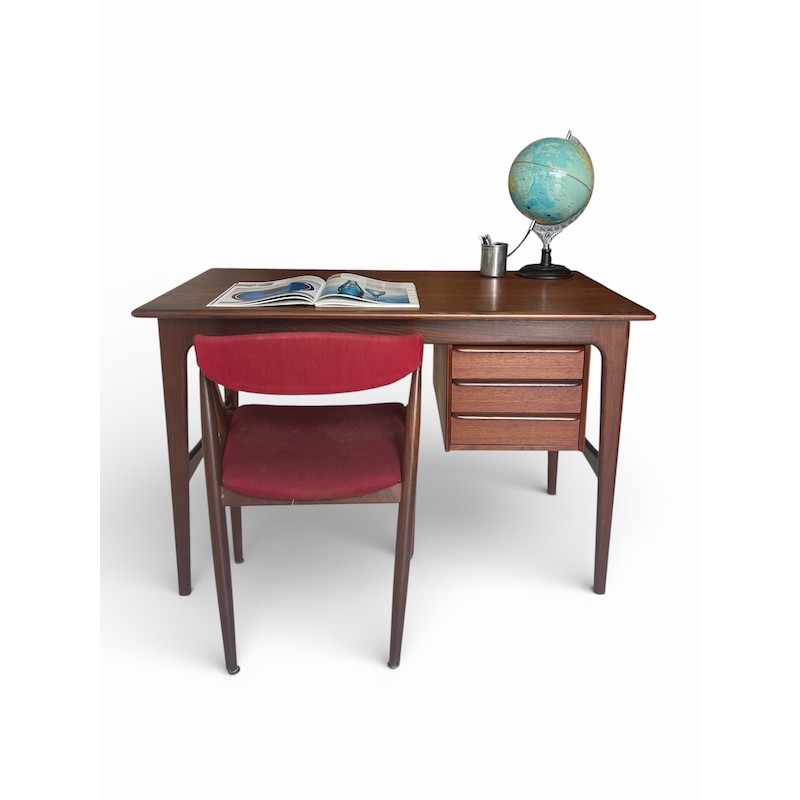 Danish Teak Desk with 3 drawers and dressed from the back id 72