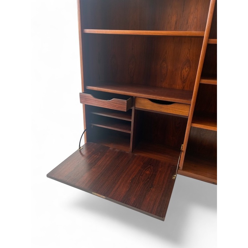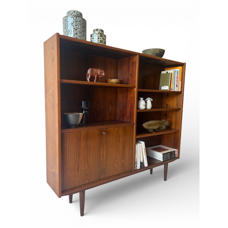 Mid Century Danish Modern Slim Rosewood Bookcase with Lower Bar Unit with Key.