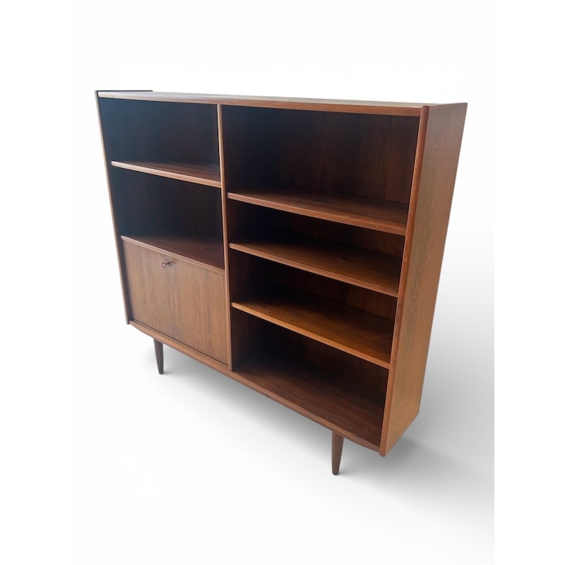 Mid Century Danish Modern Slim Bookcase with Lower Bar Unit with Key id 13